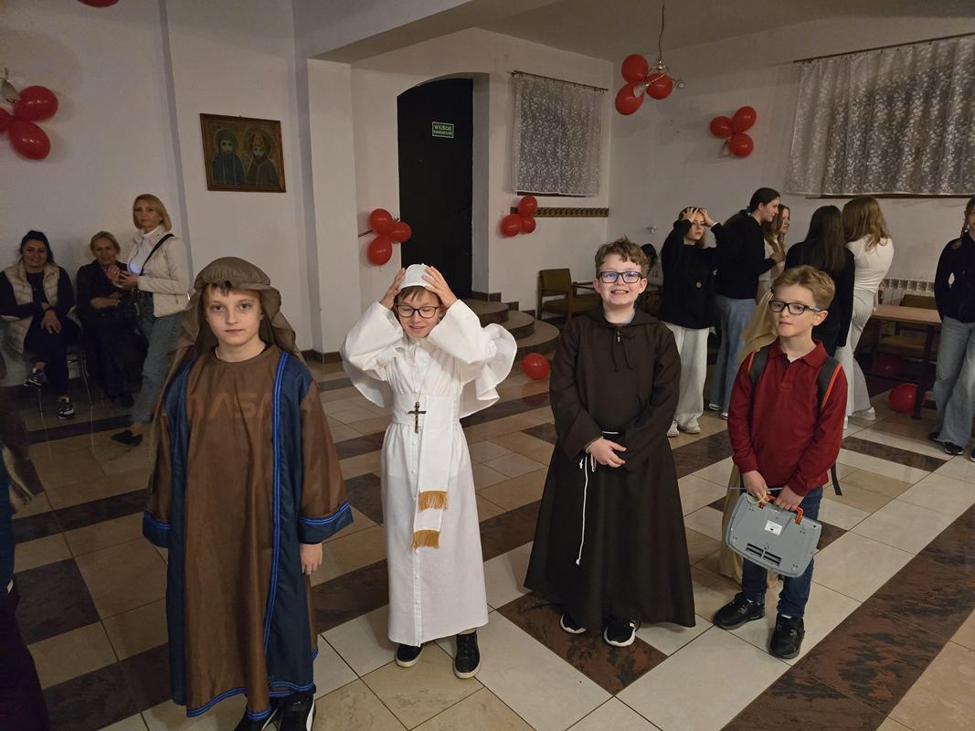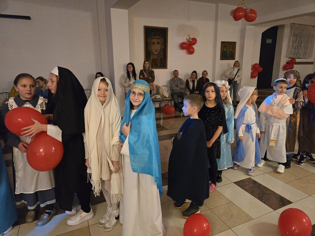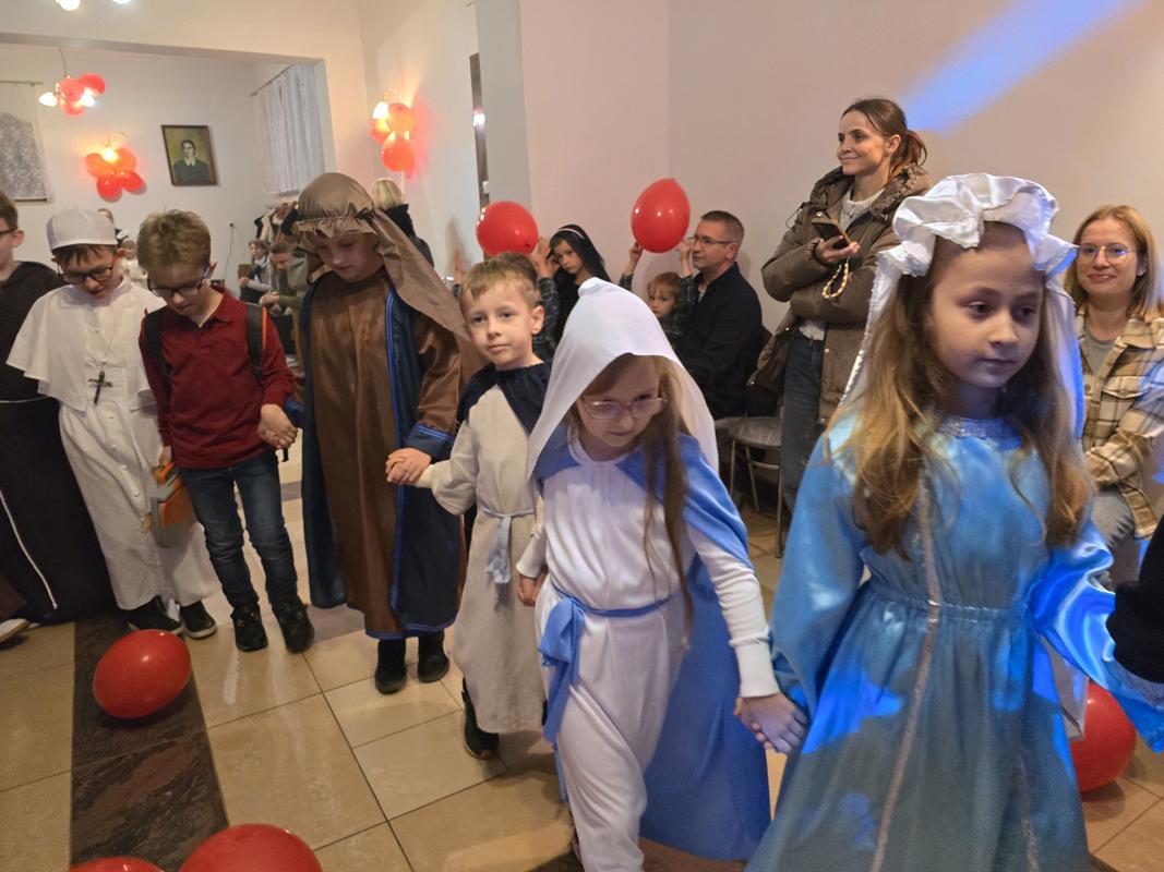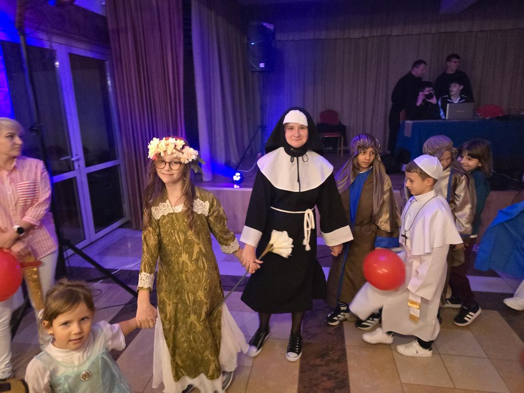 W czwartek, 30 października, w Dolnym Kościele odbył się kolejny już Bal dla dzieci, mający na celu promocję świętości i osób świętych w Kościele. Organizacja Balu spoczęła na barkach księży Łukasza i Krzysztofa. Dzieci przebrane w stroje świętych i aniołów uczestniczyły w Różańcu, o godz. 17:15. Kolejnym wydarzeniem była wspólna Eucharystia. Po niej wszyscy udali się do Dolnego Kościoła, gdzie na najmłodszych czekały: muzyka, zabawy prowadzone przez p. Sylwię Król, słodki poczęstunek oraz upominki. Dziękujemy wszystkim którzy wspierali nasze przedsięwzięcie duchowo i materialnie. Szczególne podziękowania kierujemy do Parafian i Rodziców, którzy przygotowali słodkości na ten dzień oraz do Państwa: Agnieszki Pankiewicz, Edyty Matwiej oraz Tomasza Kaczmarza, którzy wzięli na siebie trud popołudniowych przygotowań „od kuchni”, serwisu słodkości i ciepłych napoi podczas balu oraz trud porządkowania po Balu. Dziękujemy wszystkim Czytelnikom parafialnej gazetki Patron. To dzięki waszym ofiarom mogliśmy zorganizować i sfinansować całe przedsięwzięcie. Bóg zapłać!
