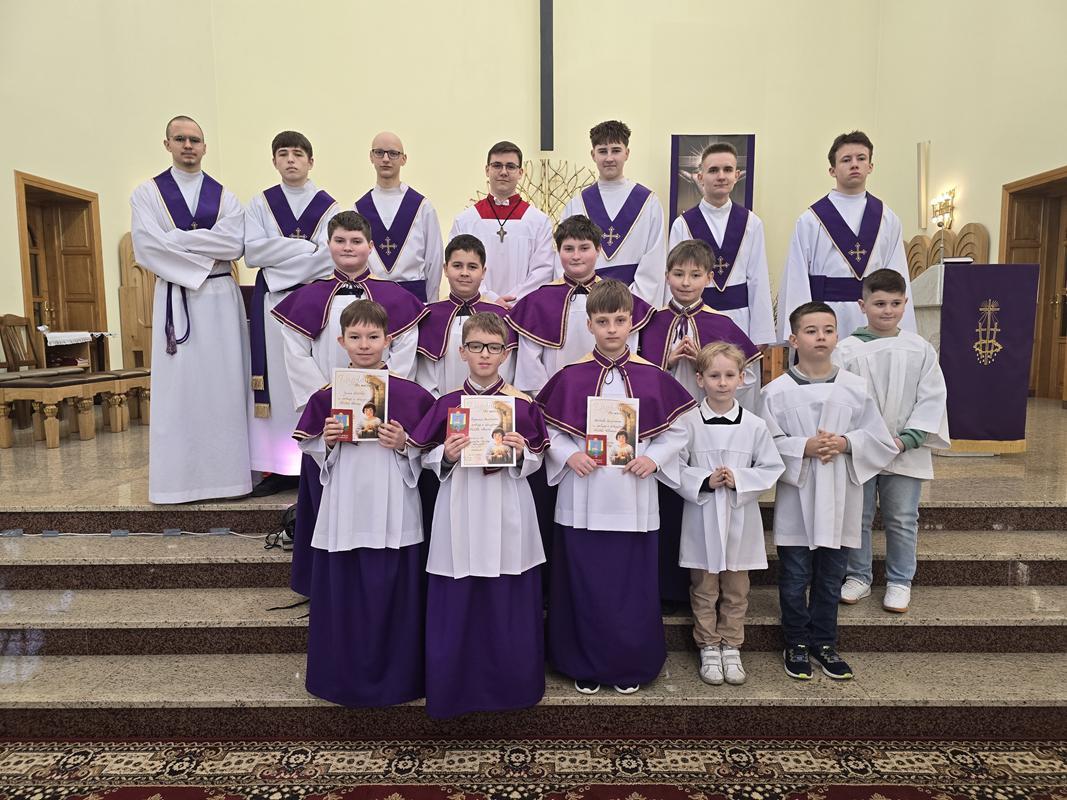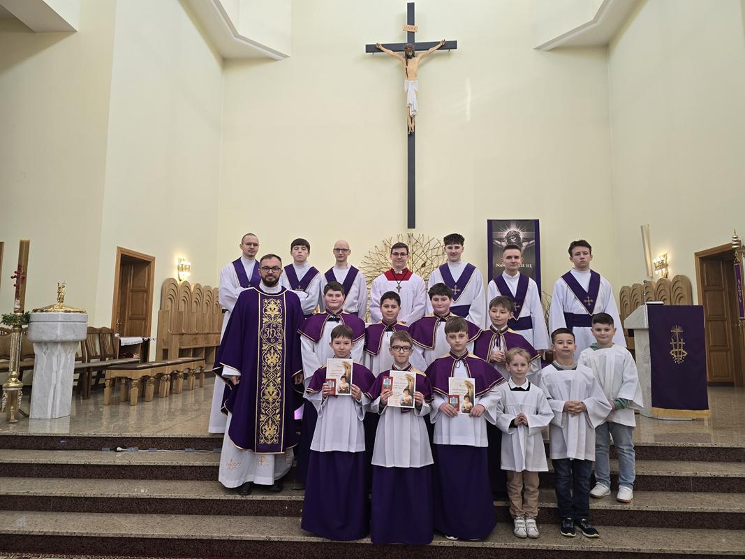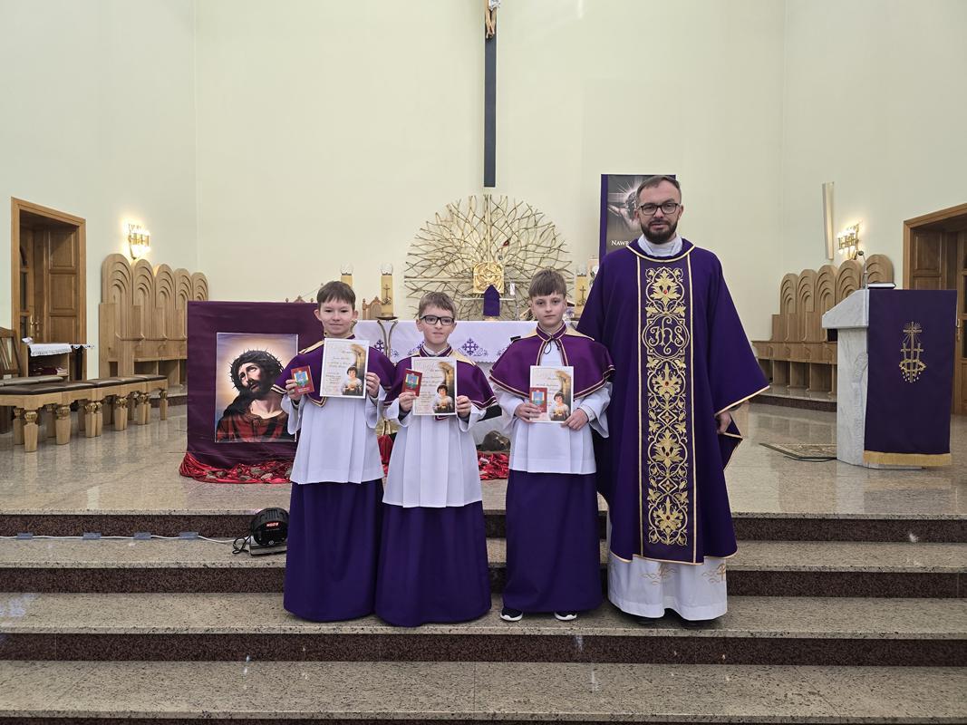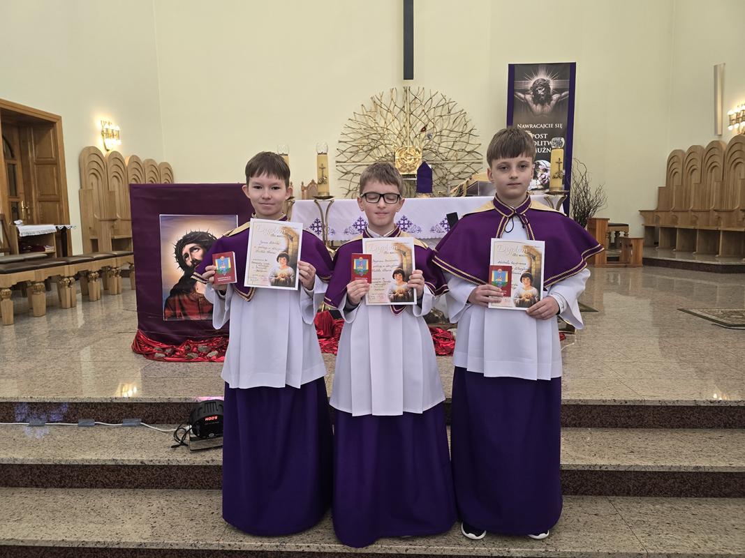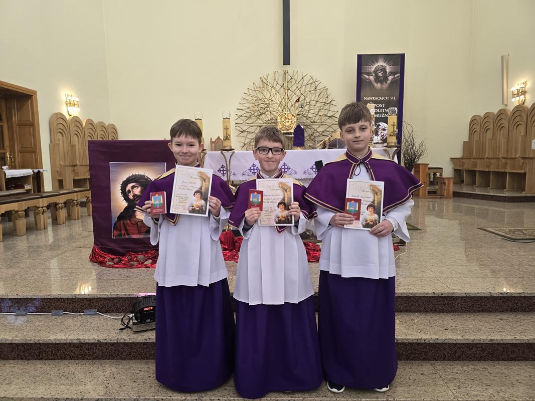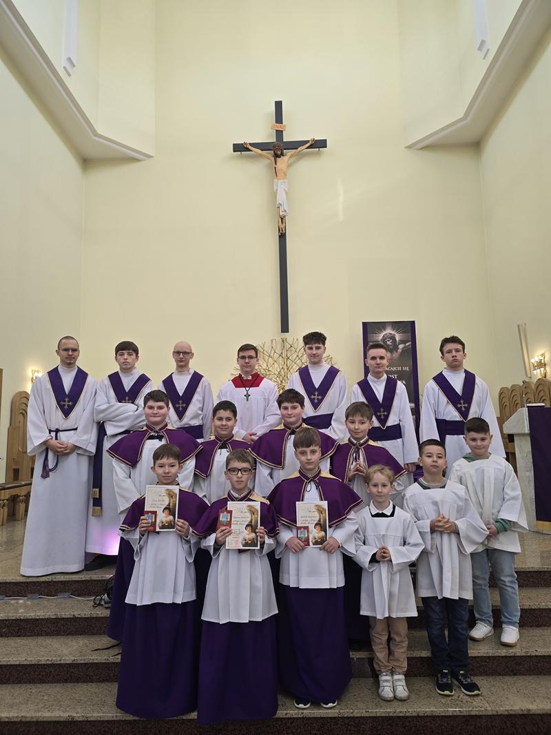 W piątą Niedzielę Wielkiego Postu trzech kandydatów otrzymało błogosławieństwo, ubrało pełny strój liturgiczny i dołączyło do, grona ministrantów. Jan Szkółka, Szymon Babieczko i Michał Szpytman, otrzymali pamiątkowe dyplomy, legitymacje ministranckie i stali się pełnoprawnymi ministrantami. Rodzice nowych ministrantów przynieśli do ołtarza dary ofiarne. Otaczajmy całą Liturgiczną Służbę Ołtarza oraz ich rodziny naszą modlitwą.